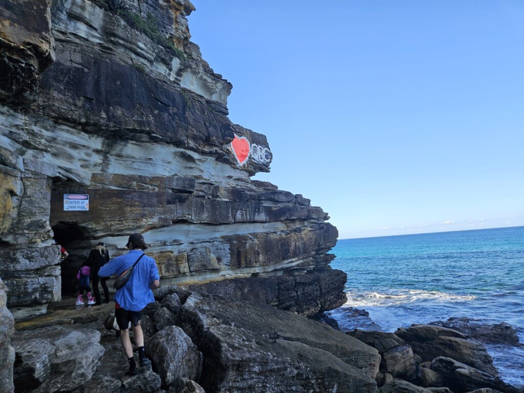 La journée commence par une promenade à travers le Manly Wormhole, un tunnel rocheux qui débouche sur un sentier côtier. Nous poursuivons avec une courte randonnée au pied de la falaise, au milieu des formations rocheuses, avant d’arriver à Freshwater Beach. Les plus téméraires ont testé l’eau (fraîche, disons-le) pendant que d’autres se contentaient de profiter du panorama.