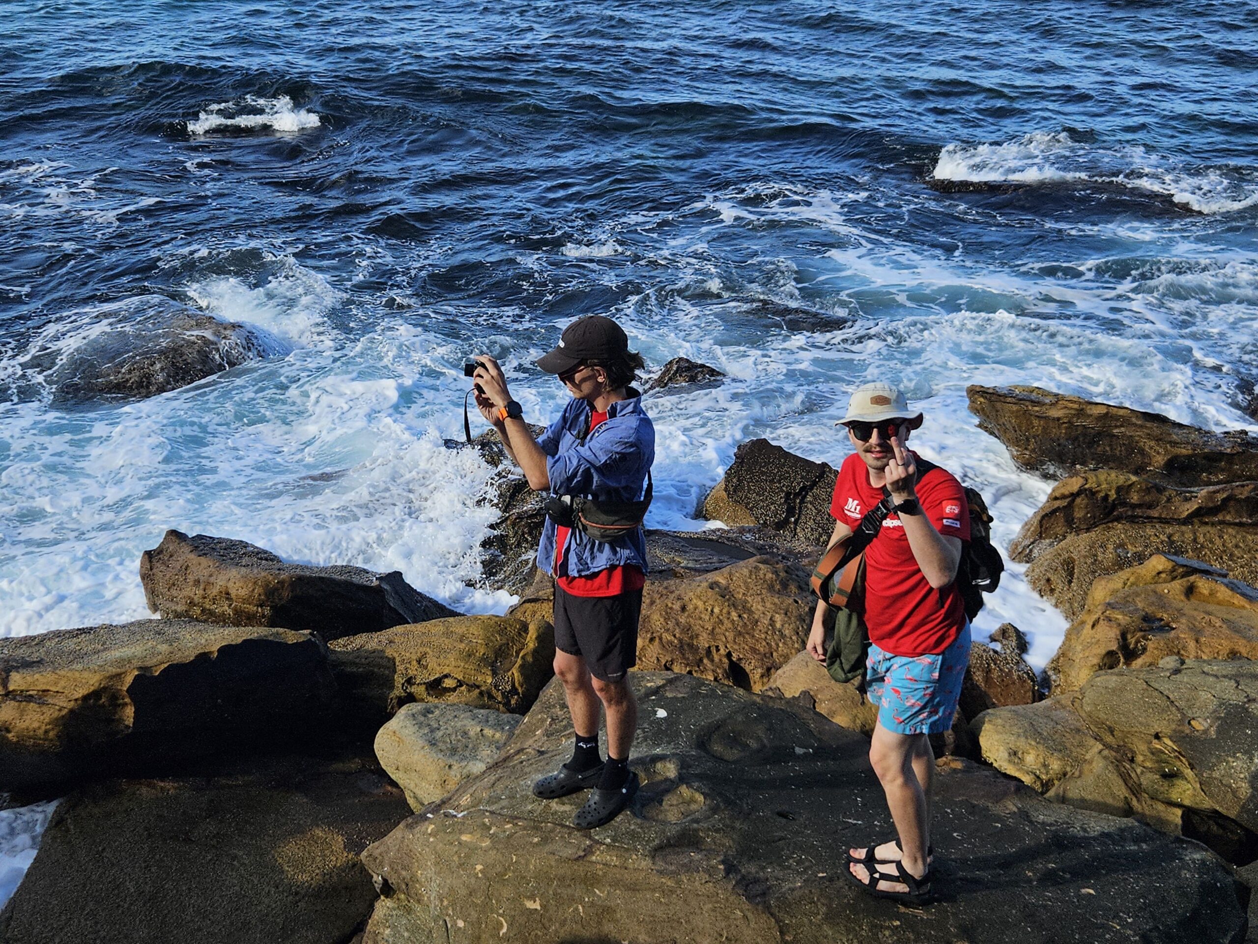 La journée commence par une promenade à travers le Manly Wormhole, un tunnel rocheux qui débouche sur un sentier côtier. Nous poursuivons avec une courte randonnée au pied de la falaise, au milieu des formations rocheuses, avant d’arriver à Freshwater Beach. Les plus téméraires ont testé l’eau (fraîche, disons-le) pendant que d’autres se contentaient de profiter du panorama.